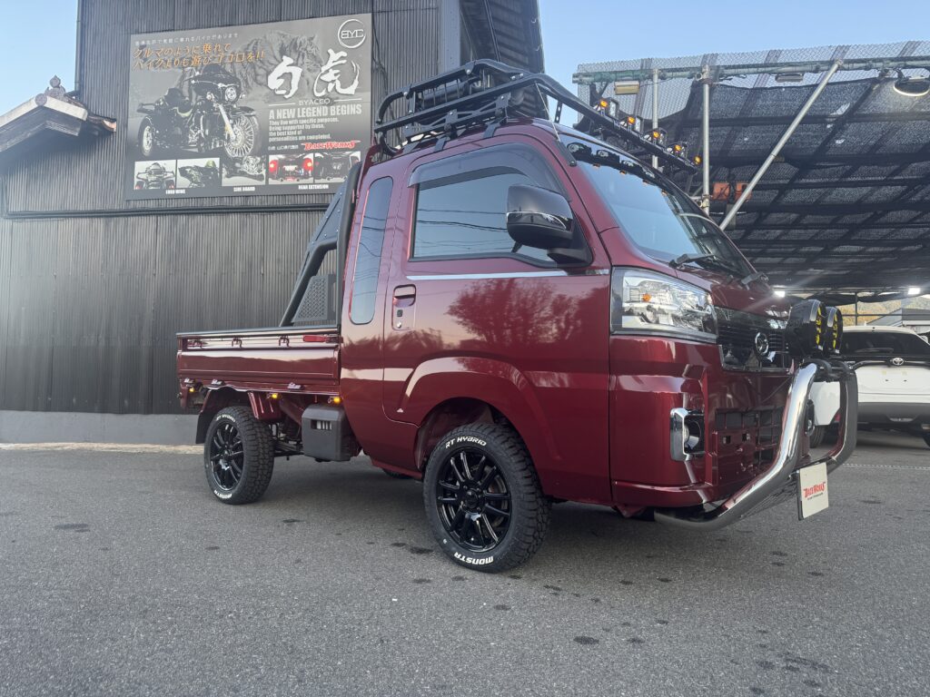 赤いハイゼットジャンボにワークキャリアとライトを装備!仕事にもレジャーにも活躍します